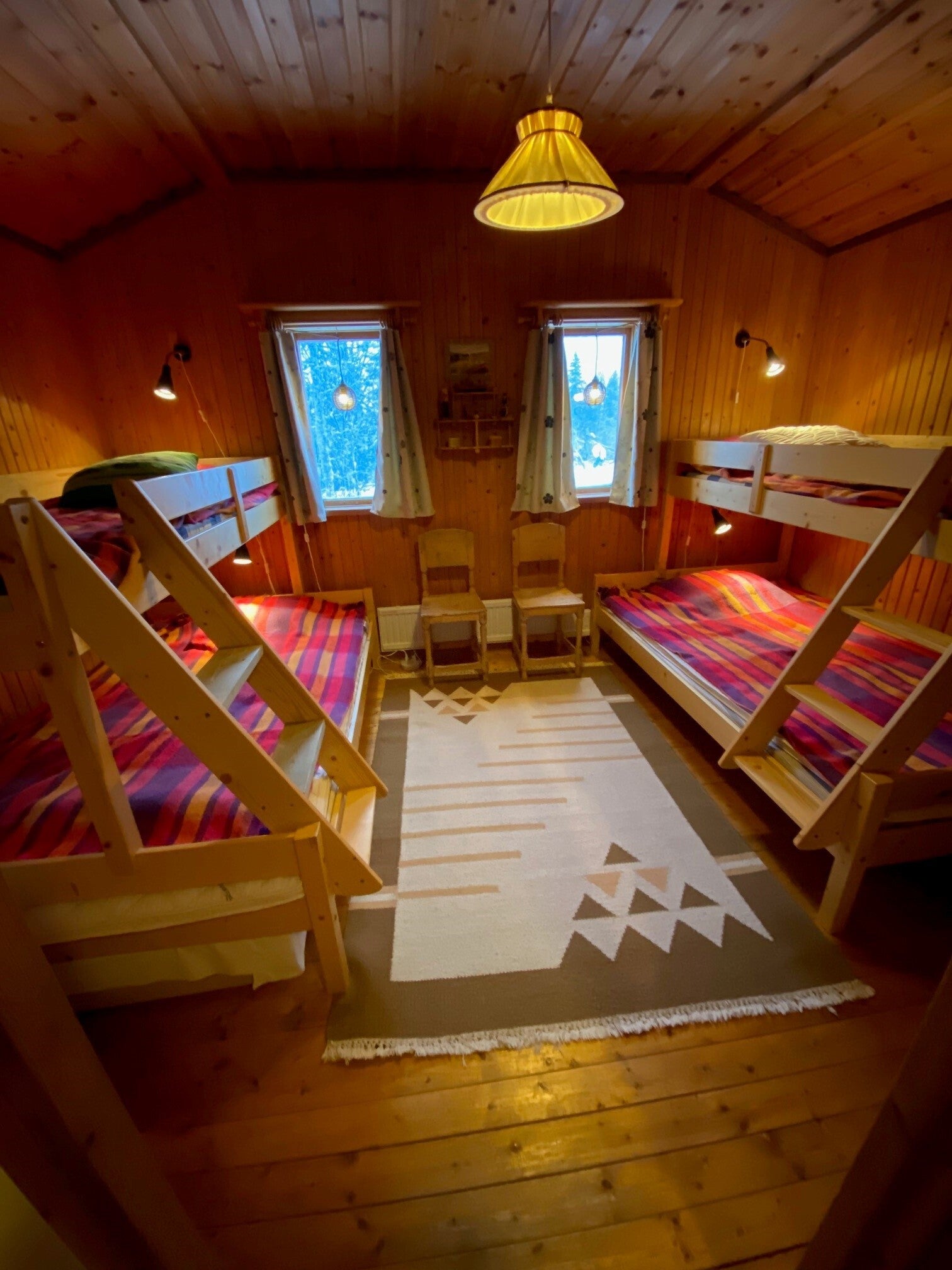 Sovrum med plats för 2 och yta att lägga packning och väskor ovanför.
